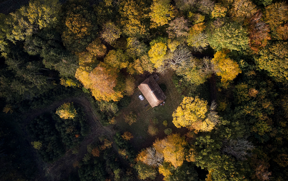 Das Forsthaus von oben. Mitten im Wald.